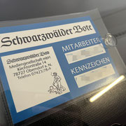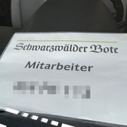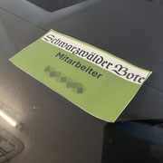 Wer "irgendwas mit Medien" macht, gilt bekanntlich als kreativ - also auch wir Zeitungsmenschen. Einige Mitarbeiter des Oberndorfer Verlagshauses haben das unlängst auf beeindruckende Weise unter Beweis gestellt, obwohl es doch eigentlich "nur" um die Erstellung vorübergehender Parkausweise ging. Die waren im September wegen einer technischen Umstellung nötig geworden, weil in der Zeit die automatische Kennzeichenerkennung mittels Kamera deaktiviert war. So erfolgte die Anweisung, dass Mitarbeiterautos derweil mit einem gut lesbaren Hinweisschild versehen sein müssen. Während manche die nüchterne Anforderung "Schwarzwälder Bote – Mitarbeiter – Kennzeichen" ganz pragmatisch umsetzten, arbeiteten andere mit Logos, Rahmen oder Symbolen und schufen teils regelrechte Kunstwerke, als hätte es einen Kreativ-Wettbewerb gegeben. Über so einen solchen könnte man also durchaus nachdenken, wenn es bei Gelegenheit mal wieder etwas zum Gestalten gibt: Denn die kreative Ader scheint sich beim Schwarzwälder Boten wohl nicht nur durch Grafik-Abteilungen und Redaktionen zu ziehen, sondern nachweislich quer durch alle Tochterfirmen und Büros.